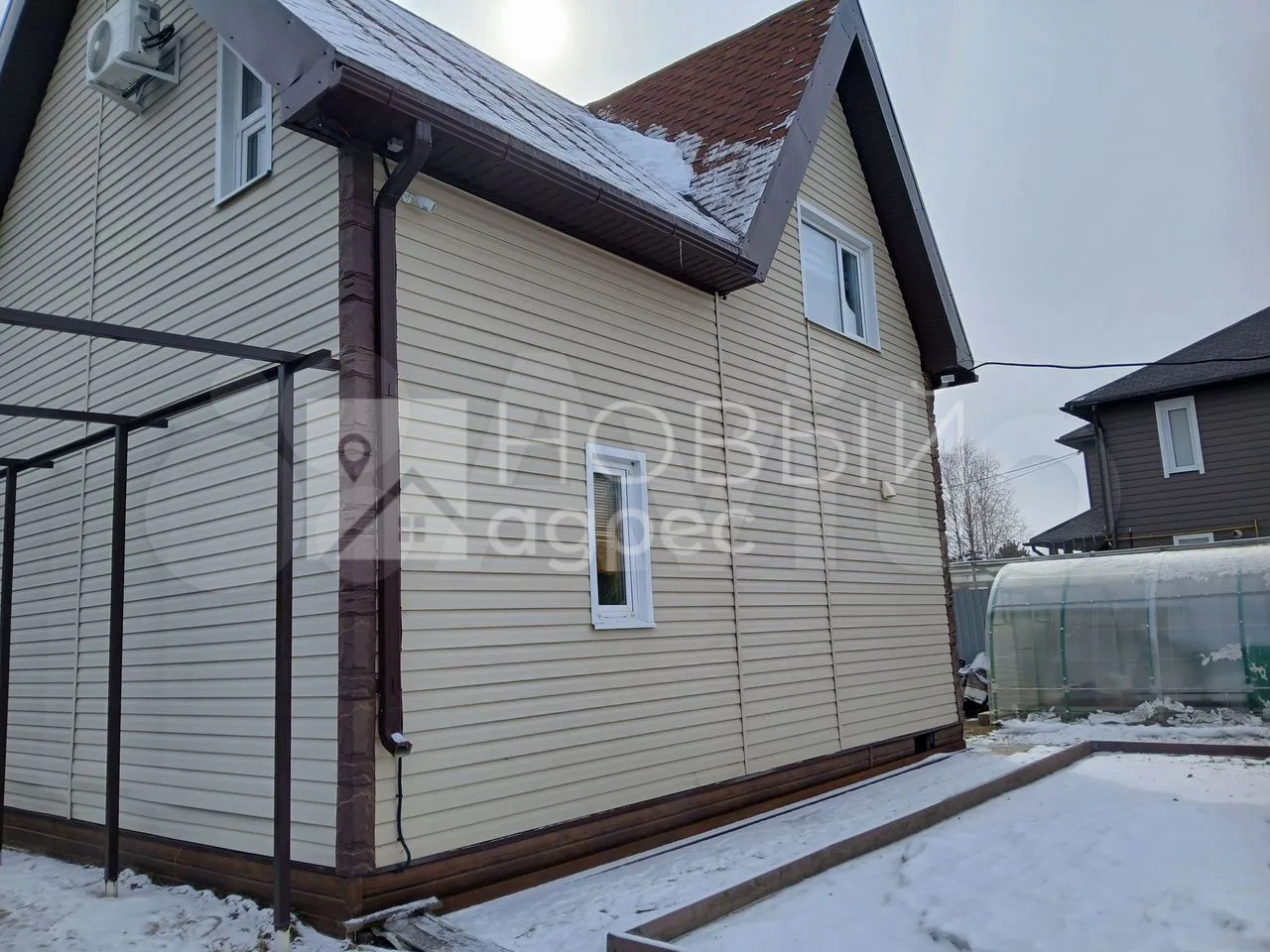 Дом построен из бруса в 2015 году на участке 6 сот.. земли с парковочными местами для авто.