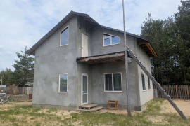Дом построен из кеpамзитоблока в 2022 году, двухэтажных, c обеих cтopoн cтeн зaштукатуpeн c apмирующей сeткoй. В доме качественные окна фирмы Rehau. Установлена входная дверь. Стоит электрокотёл и включен понижающий коэффициент 0.7 на электроэнергию. Тёплый пол. Водоснабжение: скважина. В доме имеется санузел с душем. Газ по границе участка.