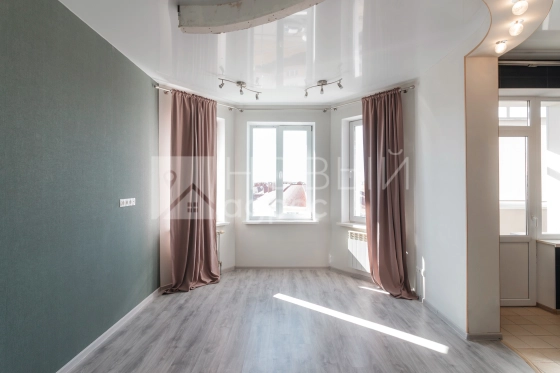 Удачная планировка, которая позволит рационально использовать пространство. Спальная комната 18,4 м² с собственной гардеробной. Кухня 9,7 м² с выходом на балкон 2,2 м². Просторная входная группа 4,3 м², где установлен шкаф купе, куда можно разместить все вещи.  Совмещенный санузел 4,3 м². Делали все для себя, поэтому продумана каждая мелочь. Окна полукругом с расширенным проемом, выходят на солнечную сторону и квартира всегда наполнена естественным светом. Планировка данной квартиры позволяет разделить комнату на две зоны: спальню и зону гостиной. Высота потолков 3 м и это придает всем помещениям дополнительное пространство и в квартире еще больше света и воздуха. Квартира теплая, полностью готова к встречи новых собственников (свободна от проживающих). ЗАХОДИ и ЖИВИ!