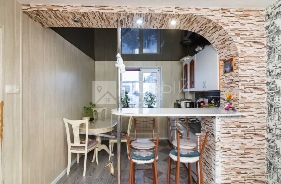 Во всей квартире натяжные потолки. Окна во всех комнатах пластиковые. Газ центральный, горячая водоснабжение городское, централизованно.