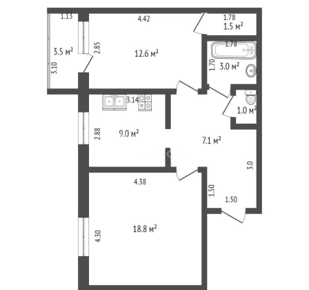 Планировка: планировка квартиры продумана до мелочей для Вашего комфортного проживания в ней, она включает в себя: коридор, к котором можно даже разместить зону отдых или дополнительные места хранения; функциональную кухню (9 м²) и две просторные светлые комнаты (12,6 м² и 18,8 м²), раздельный с/у. Из комнаты (12,6 м²) выход на балкон, а также есть место под гардеробную. Входная зона очень просторная и включает много мест для Квартира светлая, теплая, полностью готова к проживанию и не требует никаких вложений. ЗАХОДИ и ЖИВИ!