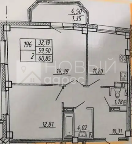 | Площадь, кв.м. | 59.5 |