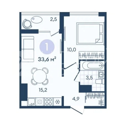 В продаже остались однокомнатные квартиры от 33,7 кв.м до 37,2 кв.м